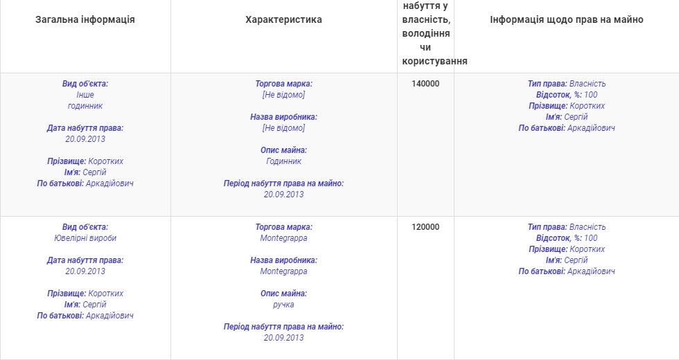 Согласно официальной декларации, заработок Коротких составлял 6,5 тысяч гривен ежемесячно, однако жил он явно не по средствам.