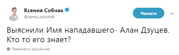 Сама Собчак утверждает, что имя напавшего на нее мужчины — Алан Дзуцев.