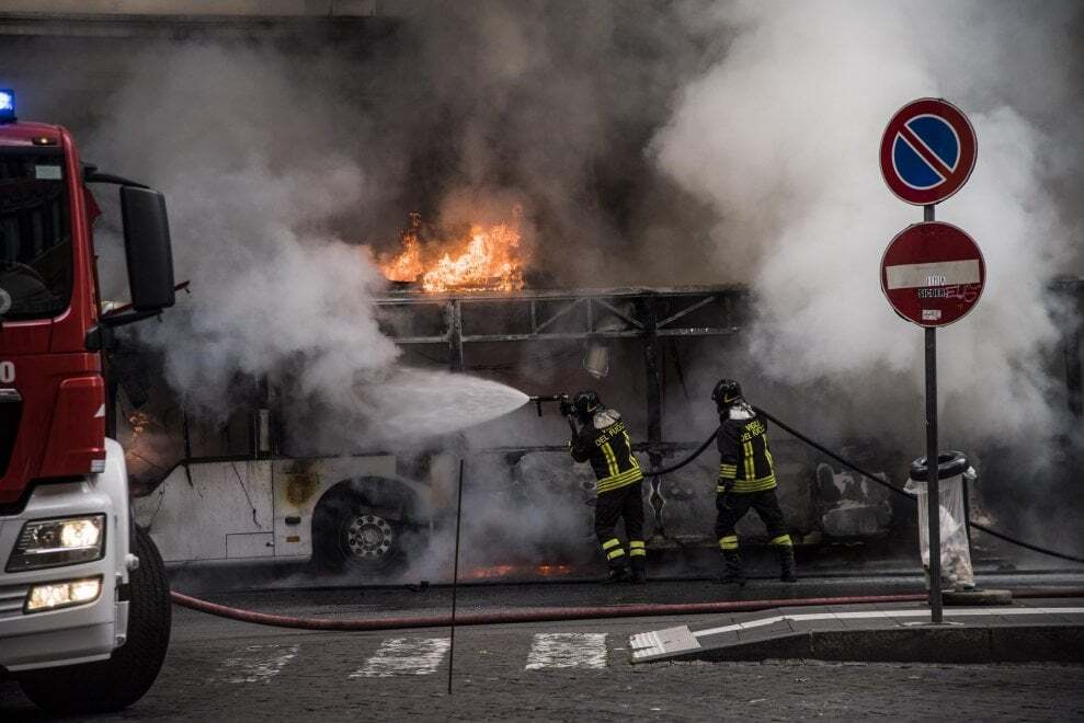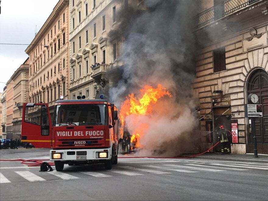 Отмечается, что ЧП произошло после 10 утра в нескольких шагах от новой штаб-квартиры Rinascente. Автомобиль, Mercedes Citaro 2003 года, начал гореть с задней части.