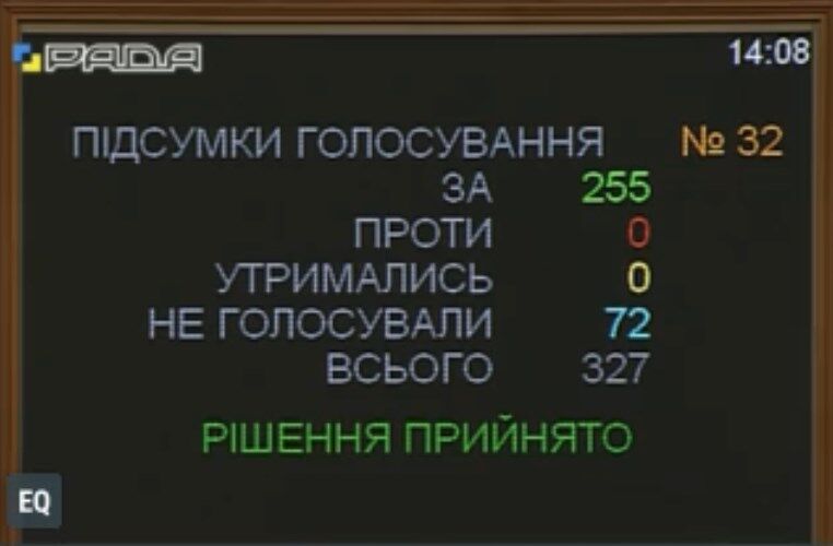 За соответствующий проект постановления (№8168-1) проголосовали 255 народных депутатов при минимально необходимых 226.