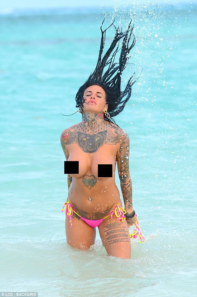 Дама, яка прославилася своїми розкішними формами і татуюваннями, позувала на пляжі у міні-бікіні. Купальник ледве приховував її без сумніву видатні частини тіла, передає Gazeta.ua.