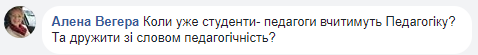 «Когда уже студенты-педагоги будут учить педагогику? И дружить со словом педагогичнисть?», — возмущается Алена Вегера.