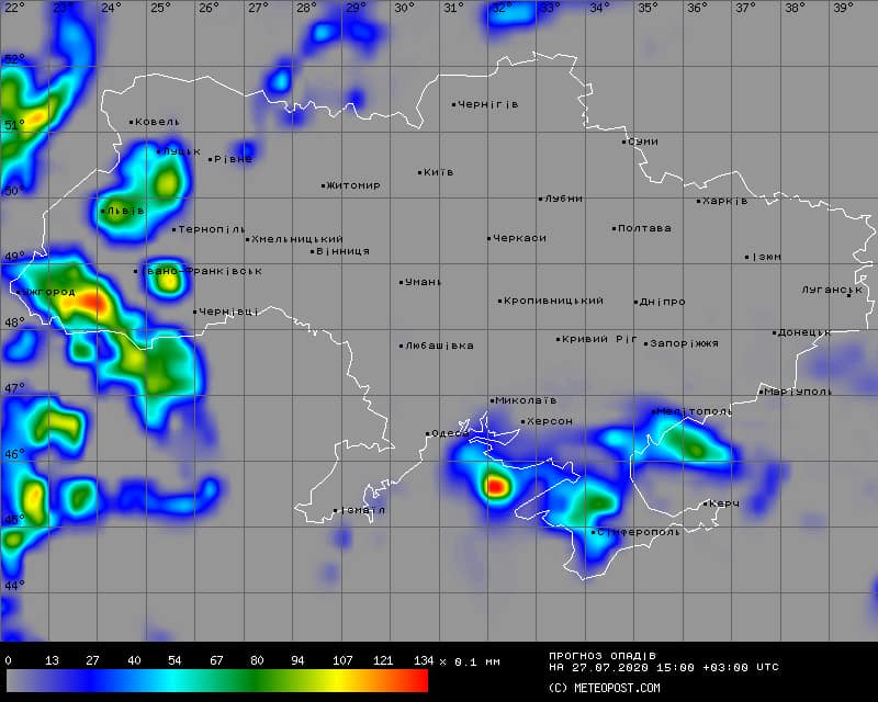 Погода в Украине 27 июля будет аномально жаркой и влажной (скриншот: meteopost.com)